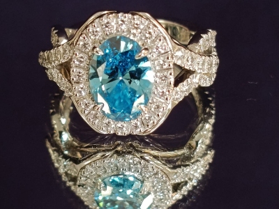Bague or blanc 750 millièmes 7.98gr serti d'un sublime diamant bleu lab de 2.21 carats EVS1 et de 60 diamants EVS1 pour un total de 0.90 carat.